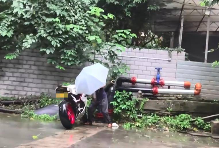 8月31日,刘先生发现自己的摩托上有人留下了字条,写着摩托车是被人推倒的,并留下了联系方式。他同对方联系,对方提供了一段视频,视频清晰地显示,一位打着伞的老年男子反复推动多次,将他的摩托车推倒,在此过程中摩托车发出了亮灯警报。