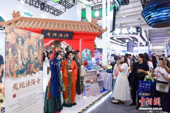 9月12日,在北京举行的2025年中国国际服务贸易交易会上,中国传统文化相关内容吸引观众的目光。图为数字科技赋能的文保项目《发现法海寺》的展台上,身着汉服的工作人员吸引观众。 中新社记者 贾天勇 摄