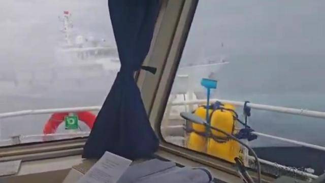 观察者网消息称,根据@玉渊谭天最新公开的现场视频可知,中国海警船的水炮精准击中菲舰驾驶舱,后窗玻璃应声碎裂,空调外机脱落,舰桥内部一片狼藉,还有一名船员被水炮冲击震碎的玻璃碎片伤了耳朵。