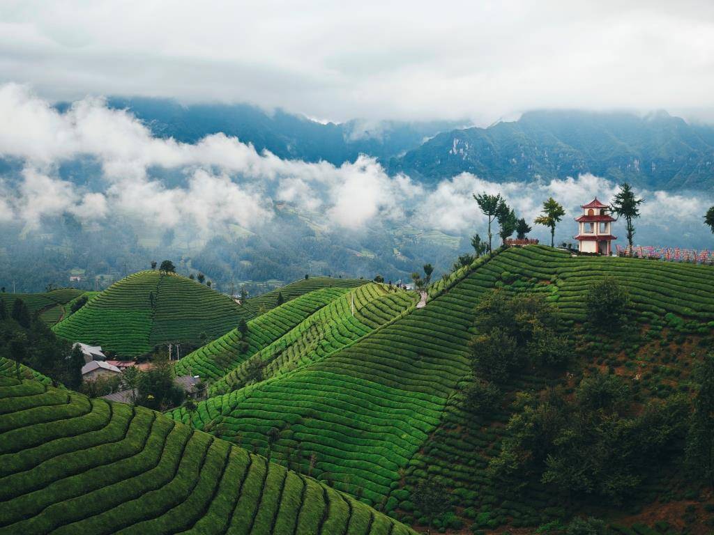 从荒山到盛景:生态与产业的蜕变。这片茶园曾是荒芜山地,经数十年匠心开发,如今已成为集茶叶生产、出口、旅游观光于一体的综合基地。它以生态有机种植为核心,在海拔千米的山间,造就了连绵起伏、如诗如画的茶山景观——云雾缭绕时,茶垄似绿色丝带缠绕山峦;晴空万里时,茶园与蓝天、心形云朵相映成趣,是无数游客与摄影爱好者的“打卡圣地”。