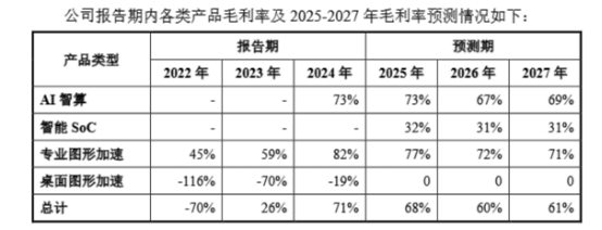 摩尔线程预计,公司最早于2027年可实现合并报表盈利。“2025—2027年预测期,公司收入仍将主要来自AI智算产品,智能SoC产品收入将保持快速增长。”