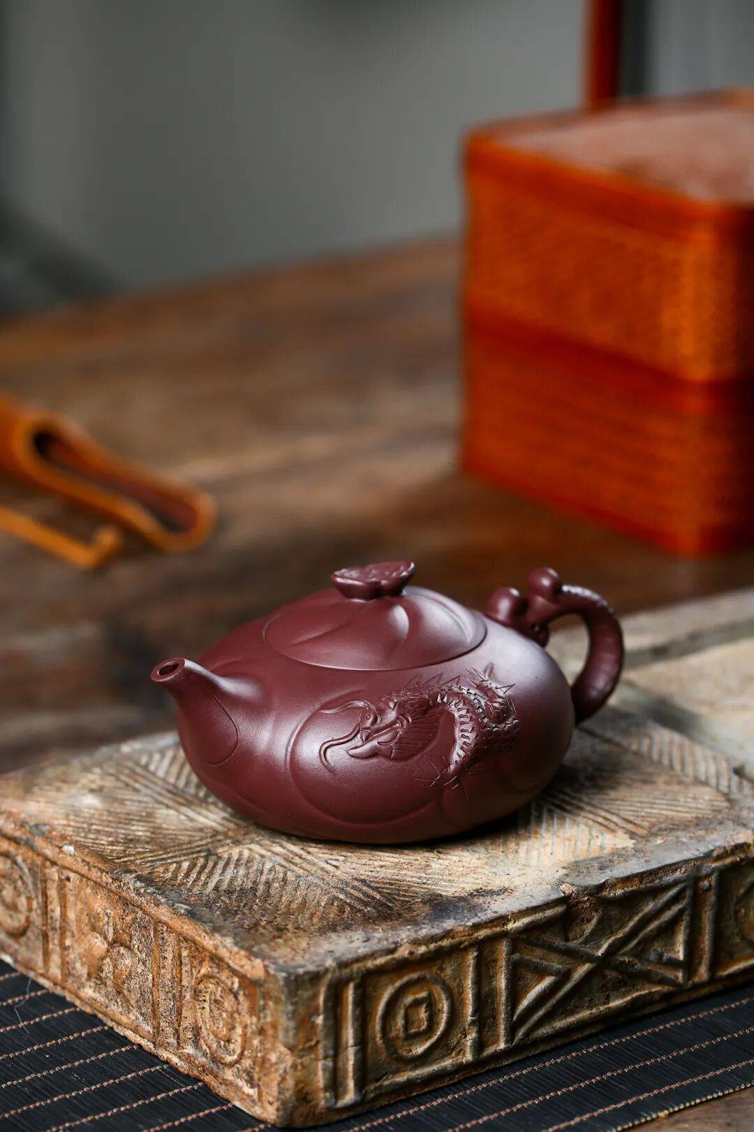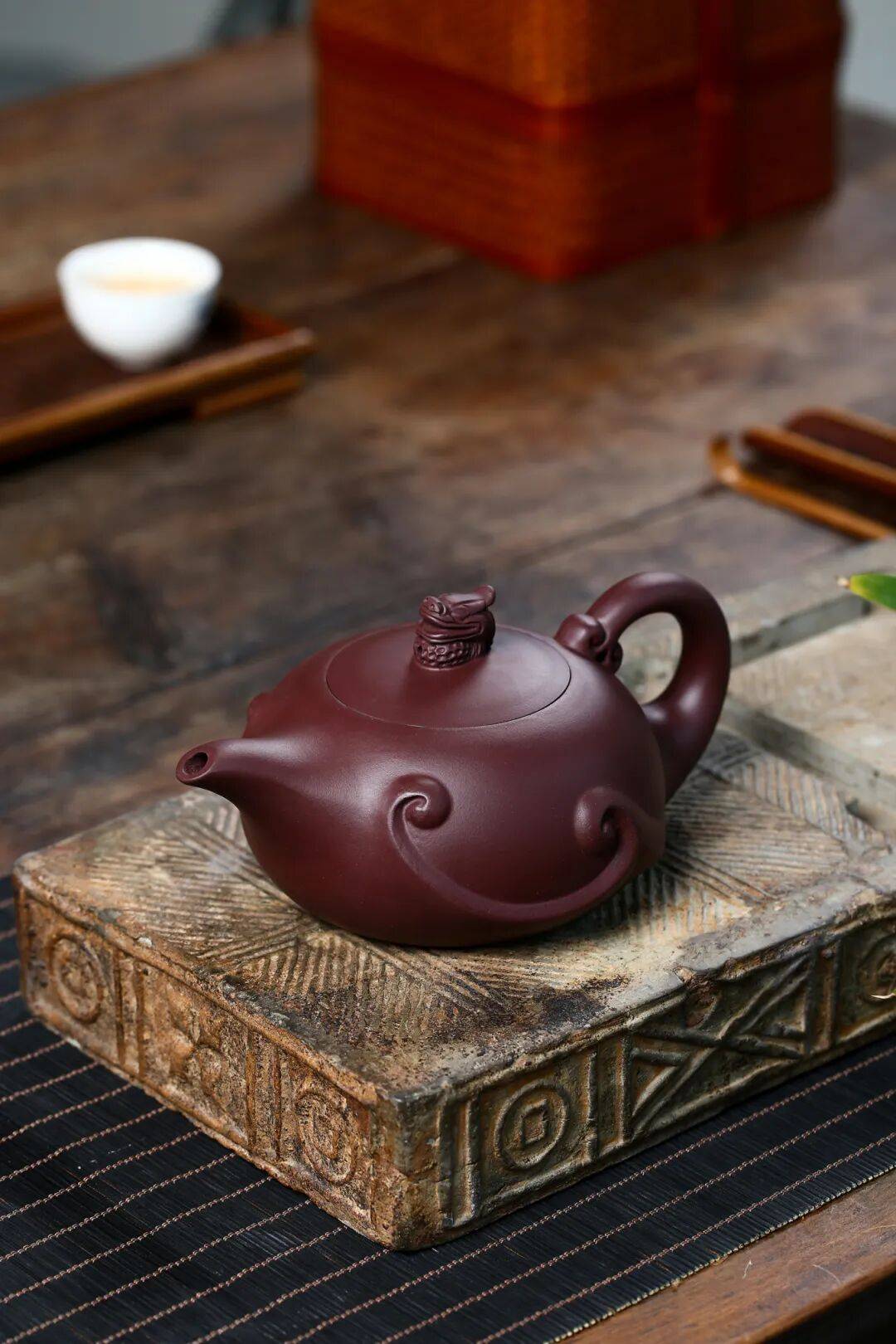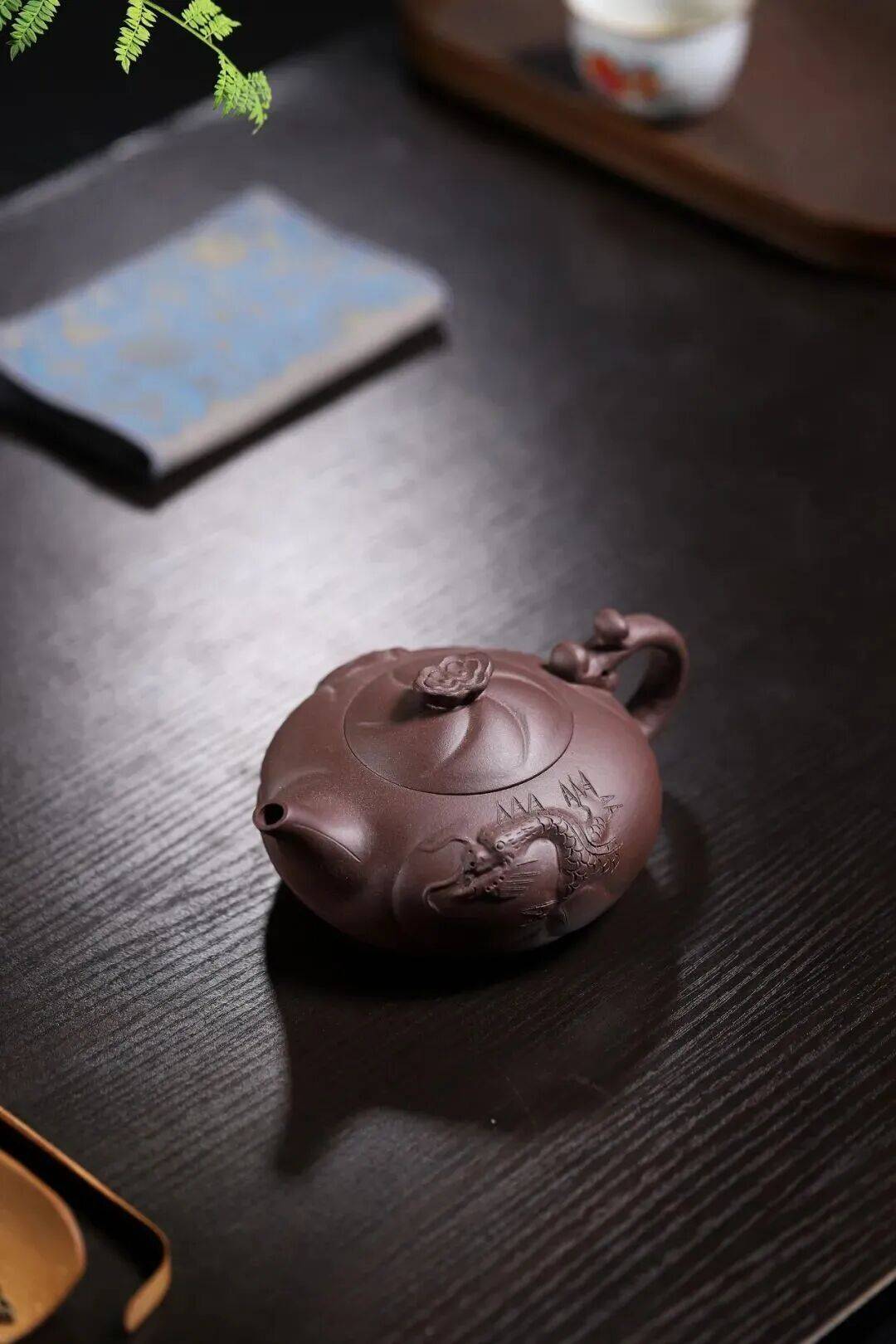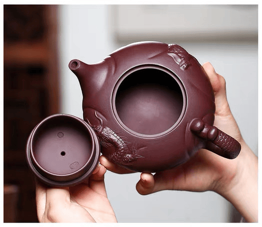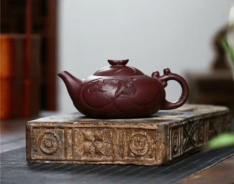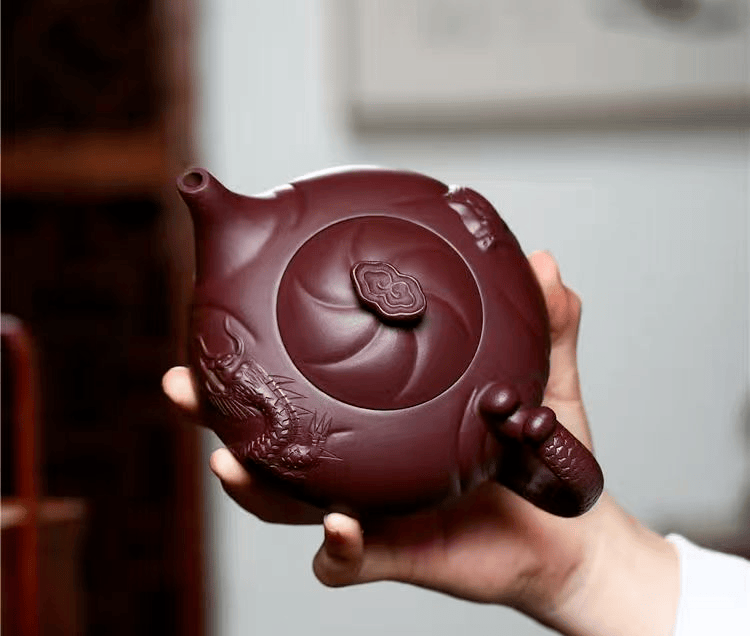俞震大师溯洄于先民想象的瀚海,以紫砂作波涛,以龙魂为火,将“龙瀛”二字刻进壶骨。