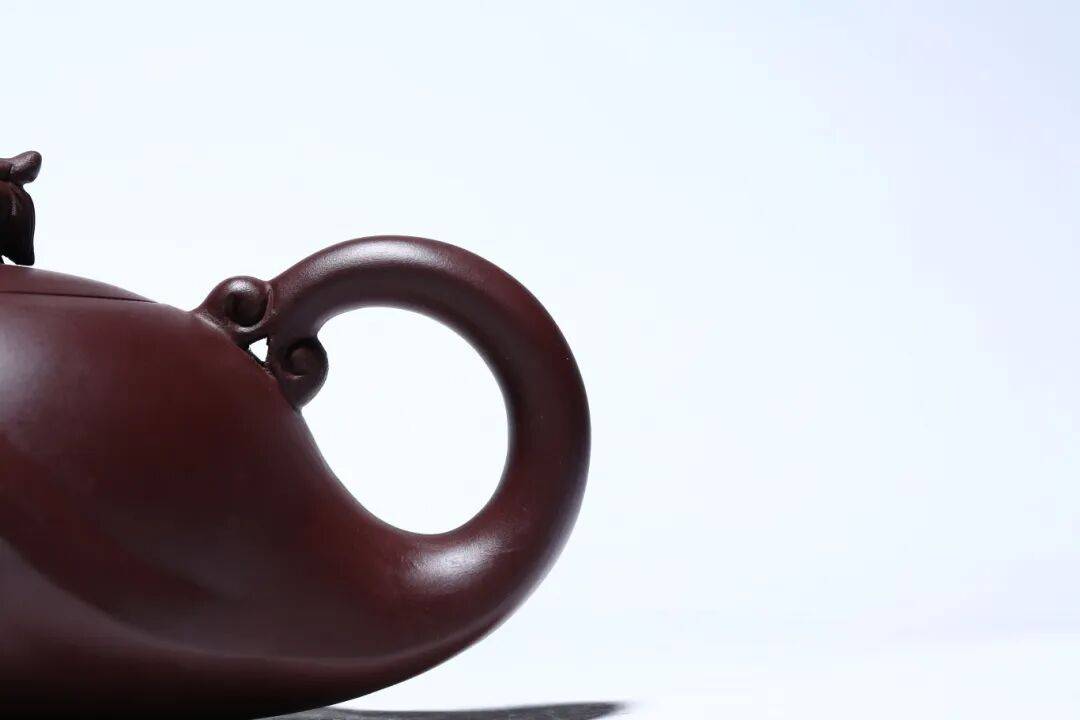 壶把圆弧大耳,截面内凹,指扣处恰成龙尾,端拿稳当。