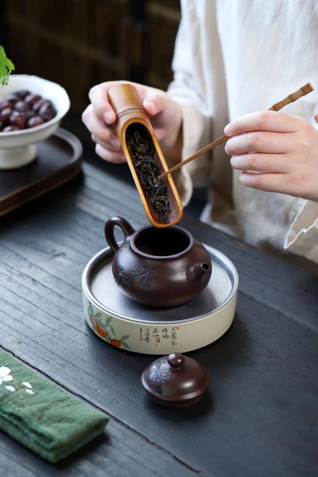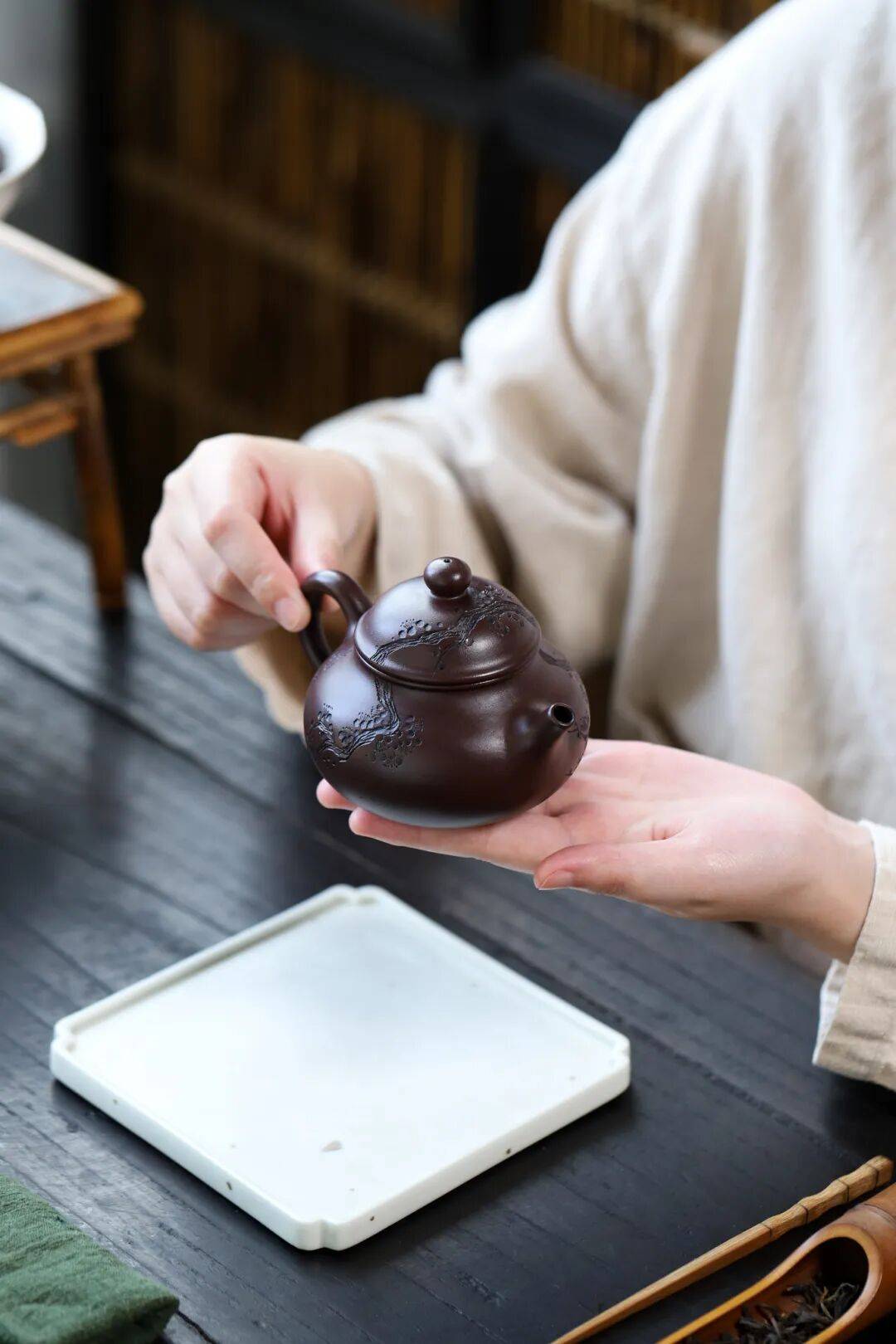 而紫砂壶,一把即一茶事,壶身会记忆,壶盖可传承。