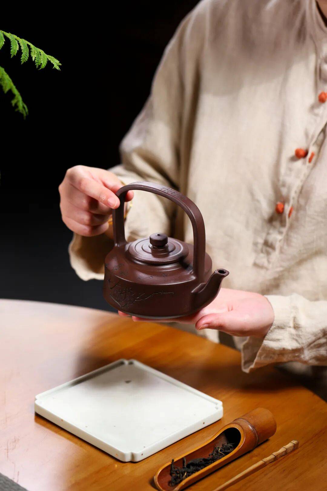 梁内留空,与壶体构成“海眼”,注茶时气流回荡,香聚而不闷。