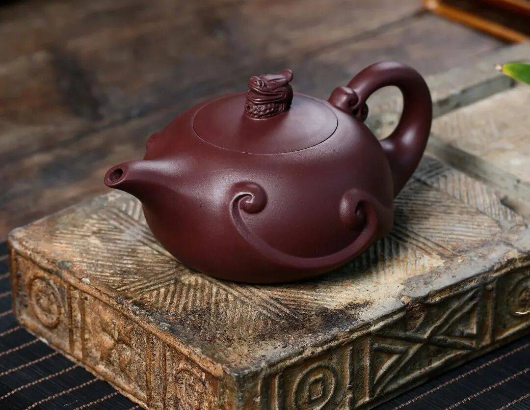 壶身刻就“浪花”,前浪未平后浪又起;紫泥沉稳,潮纹灵动,一静一动,寓“海之神秘,龙之机变”。