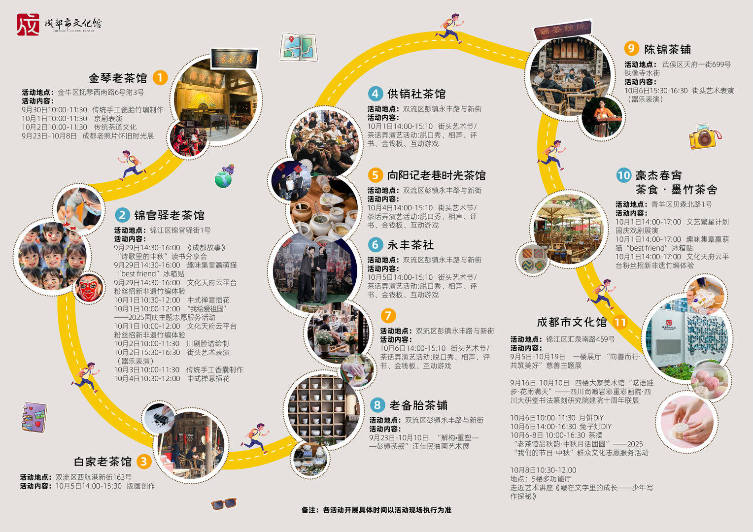 红星新闻记者9月29日获悉,这个国庆中秋,成都市文化馆将联合双流区文化馆,集结具有成都烟火特色的十余个老茶馆,推出“泡茶馆 过双节——安逸屋檐成都老茶馆文化体验活动”。这些老茶馆包括金琴老茶馆、锦官驿老茶馆、白家老茶馆、彭镇供销社茶馆等,市民和游客可以关注成都市文化馆官方微信公众号获取活动详细信息和报名方式。