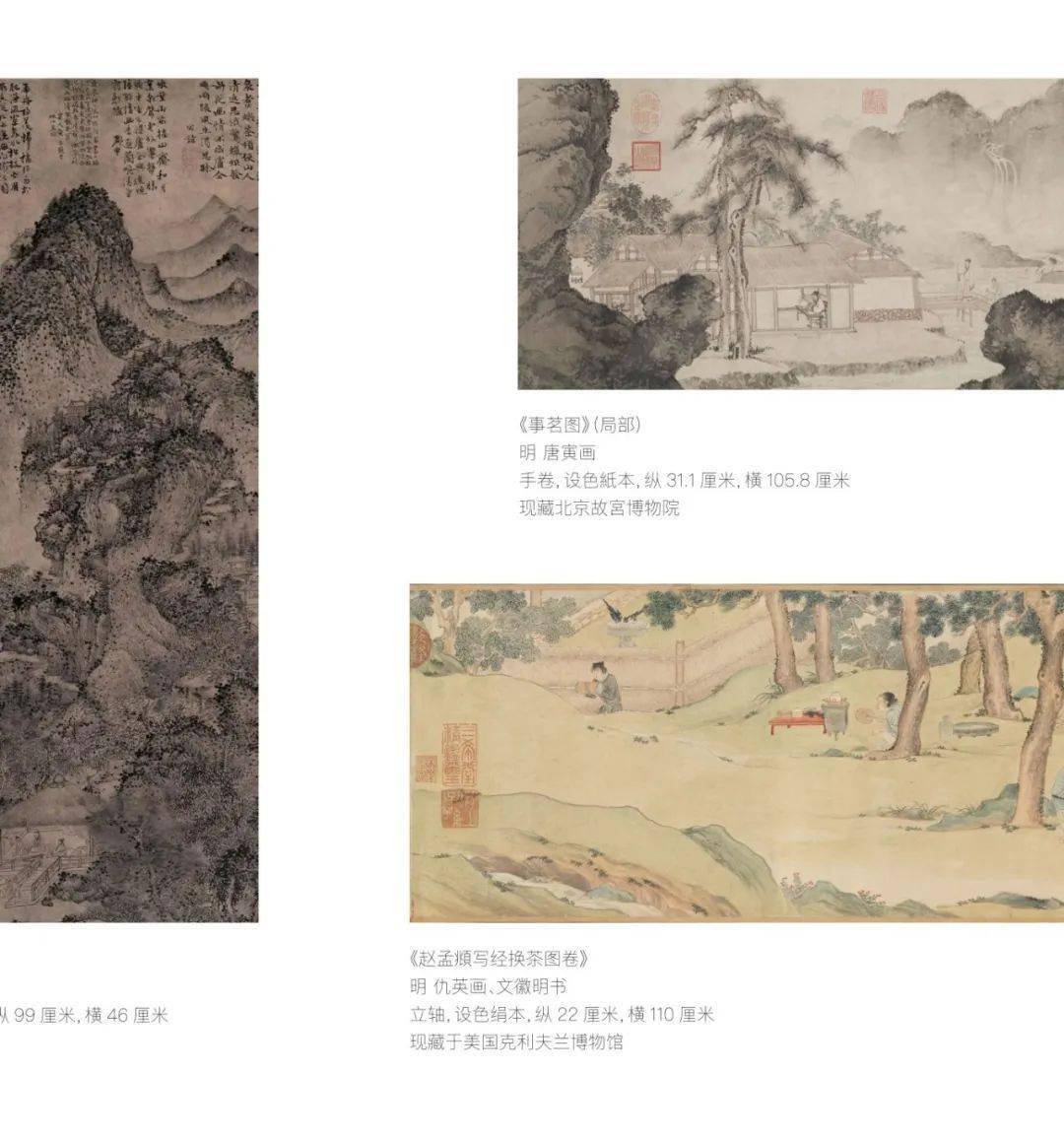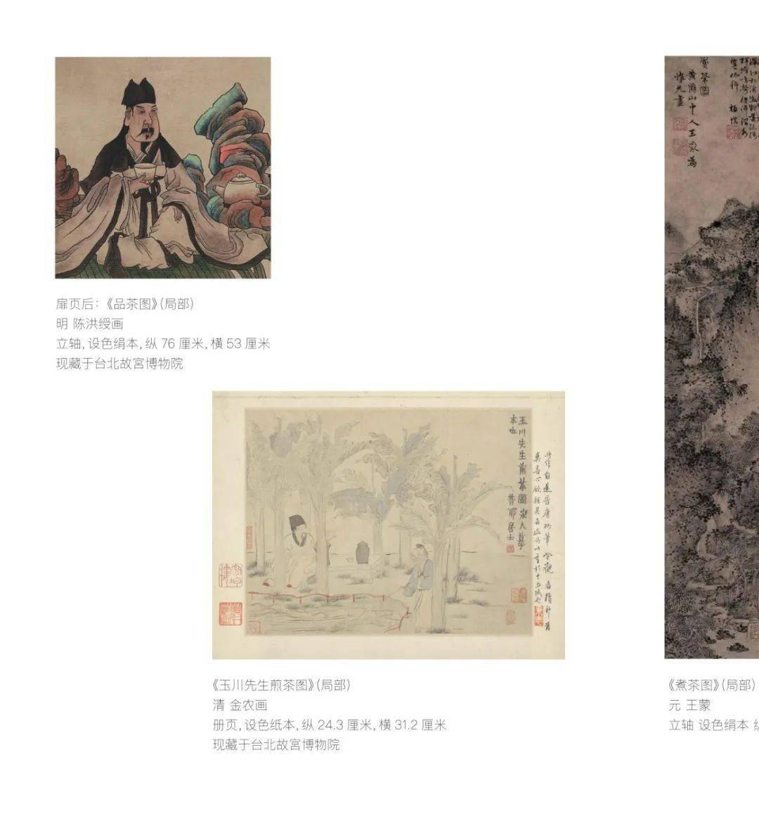 该书甄选了陈洪绶、唐寅、刘松年、赵原、金农、王蒙、仇英、文徵明、米芾、苏轼这十位名家的“茶”主题传世书画珍品,如:《品茶图》《事茗图》《卢仝烹茶图》《陆羽烹茶图》《玉川先生煎茶图》《煮茶图》等传世经典。以插页形式穿插于正文之中,与知识内容相得益彰,营造出澄明诗意的氛围。翻阅之间,仿佛身处唐人庭院,看泉煮沸、茶香氤氲。这种阅读,不只是“看书”,更像是一场仪式,一次“安放内心”的过程。