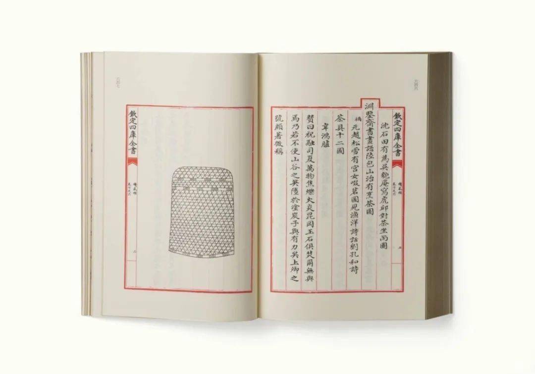 2014年,原大原色原样复制文津阁本《四库全书》的工程在扬州取得成功,由商务印书馆正式出版。出于对《四库全书》从书籍形式到文本内容的全面把握,《茶典》的设计团队提出回到书籍本身,去欣赏其作为抄本所特有的书法和绘画的审美价值。