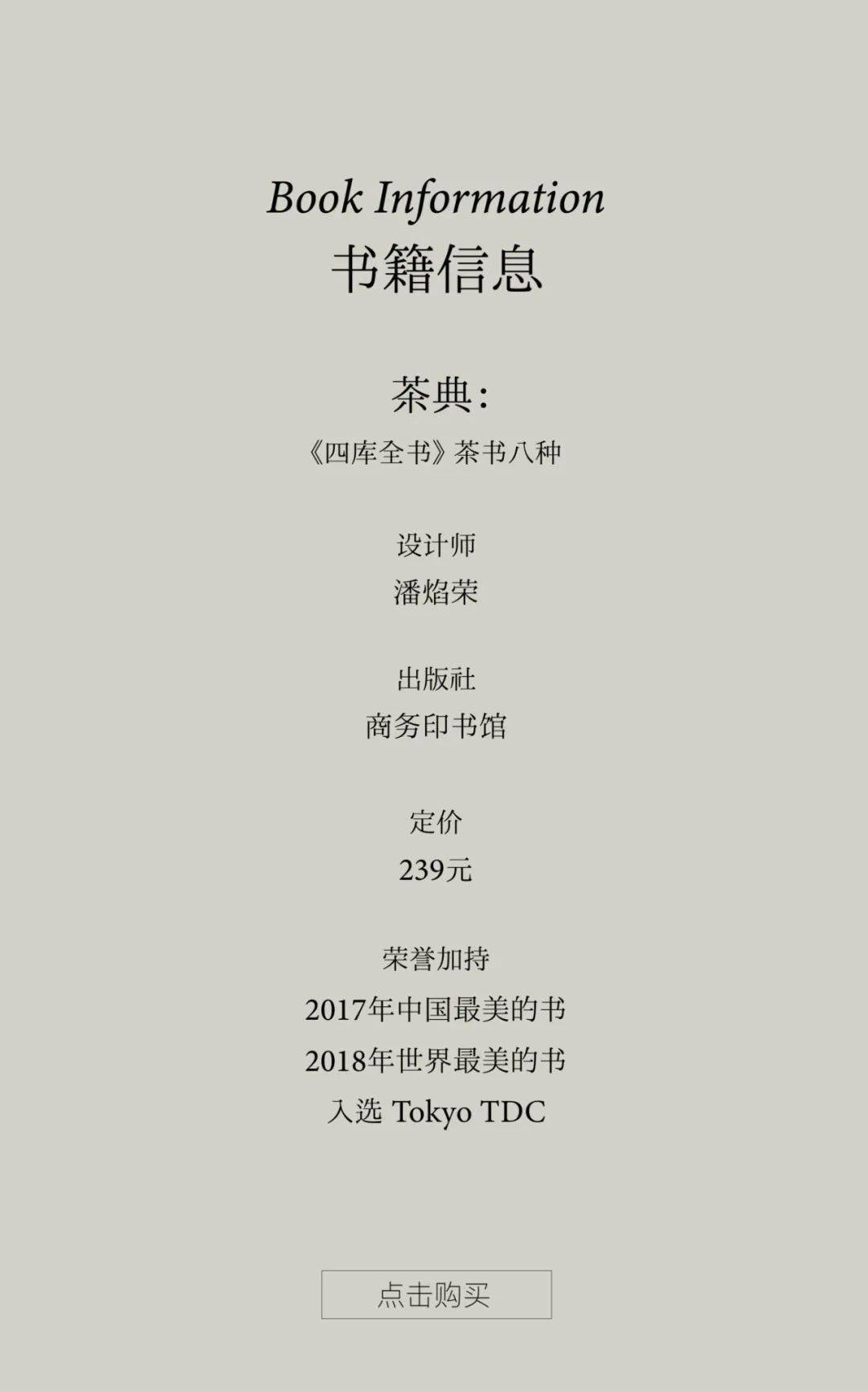 这本看似没有经过设计的书,却在每一个阅读细节上都做足了功课。设计师潘焰荣回忆道,“我接到这本书的时候,出版社的内容文本是《钦定四库全书》的内容。如果我们用过多的技巧或者设计的痕迹,来表达中国博大精神的茶文化,是不合适的。” 他说这话时,想到的是庄子 “朴素而天下莫能与之争美”,于是给这本书定下基调:不露声色,却让每个细节都成为茶文化的注脚。