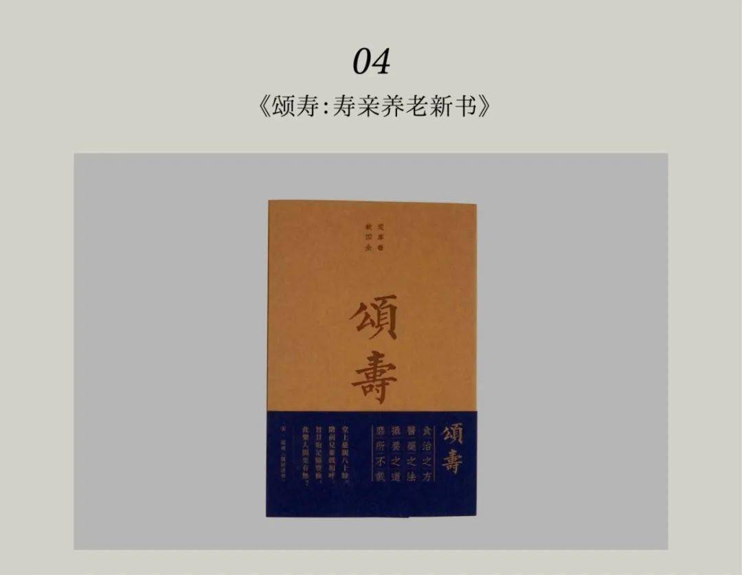 《颂寿》以老年养生为专题,详述修身养性、药物与食治调理、按摩腧穴等保健内容,并附各类方剂120余种。并述老年日常起居、闲情逸致、将息养性以及古今善行、行孝劝善等内容。以海派画家任伯年的经典巨制—《群仙祝寿图》为插图,画作描绘了农历三月初三,各路神仙共赴瑶台蟠桃会为西王母祝寿的场景。