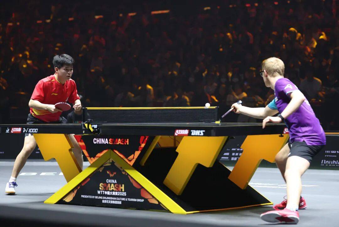 首场男单半决赛,法国选手费利克斯以4比2击败了卫冕冠军林诗栋。两人在这场比赛中打出了非常快的攻防节奏,从发接发到相持段,双方竞争非常激烈。第四局尾局阶段的争夺是整场比赛的关键节点,费利克斯抓住机会以两分优势胜出后,在后两局明显打得更加释放。他本身就是一名擅长快发动和快转换的运动员,在中近台站住位置后,他的两面衔接在比赛中完全不落下风。林诗栋输掉第四局后,失误愈发增多,而且欠缺一些控制节奏的手段,最终遗憾止步。