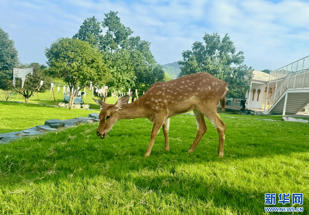 ACDC安吉创意设计中心中,梅花鹿正悠闲漫步。新华网发 郭妍廷 摄