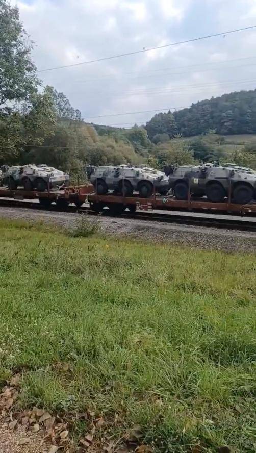 斯洛文尼亚普雷克穆列地区境内,也出现一个,意大利陆军VBL Puma 6x6装甲车的武器专列。据信这批意大利的装甲车,正运往乌克兰。意大利军方此前已向乌克兰军队提供过同款装甲车,但当时未公开宣布移交。意大利当局将这些被封存几十年的,冷战时期的武器装备,保留着附加装甲,目前正通过北约境内铁路运输,即将通过保加利亚,罗马尼亚,进入乌克兰境内,交付给乌克兰武装部队。
