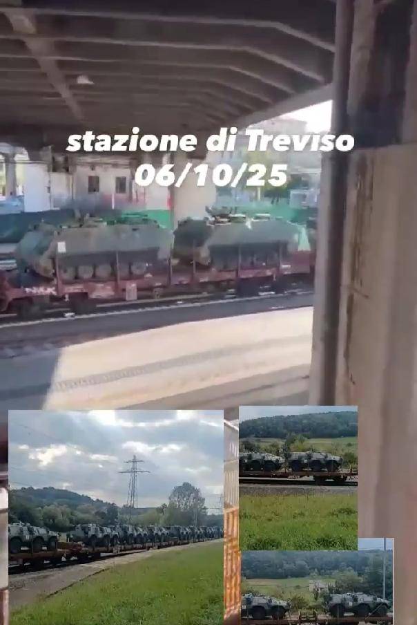 “不再伪装,意大利露出了真面目!”当地时间2025年10月8日,意大利当地人拍摄到,意大利军方正准备向乌克兰运送VCC-1装甲车(M-113装甲车改进型)和M548型装甲运兵车。按照意大利方面的说法,意大利军队正在通过铁路向乌克兰运送一批VCC-1装甲运兵车和M548履带式运货车。运输这批装甲的列车经过意大利北部城市特雷维索车站。