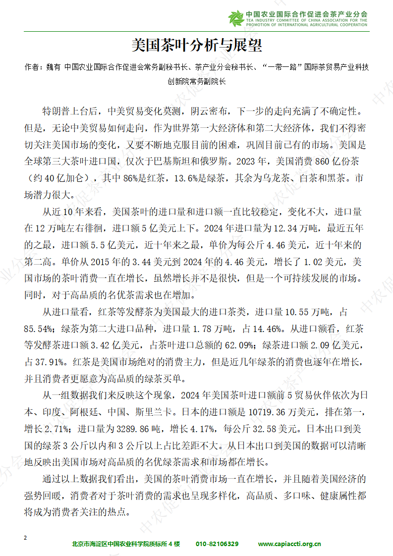 2024年美国茶叶进口报告:消费持续增长,中国有机绿茶成破局关键