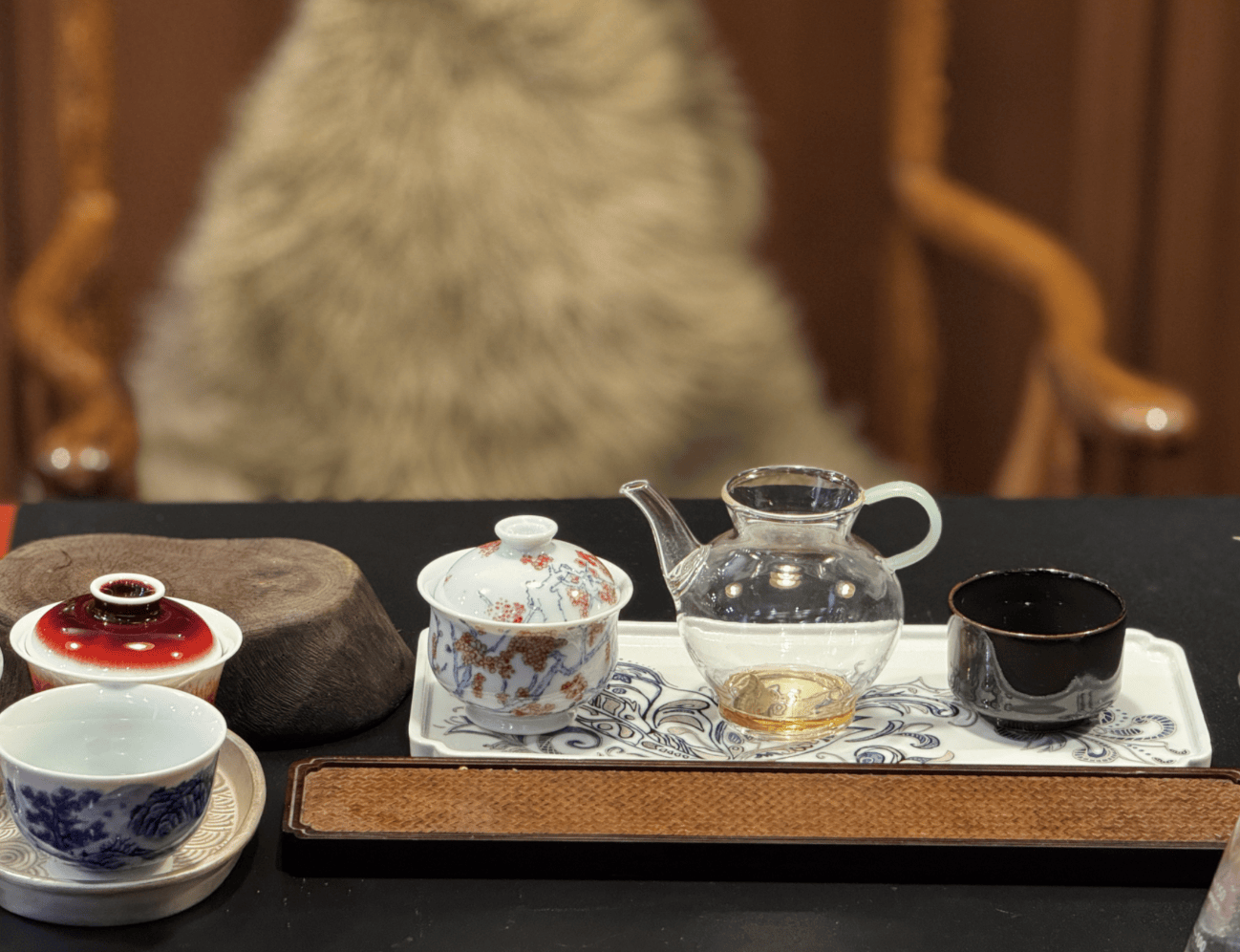 茶桌上是有许多茶具的。