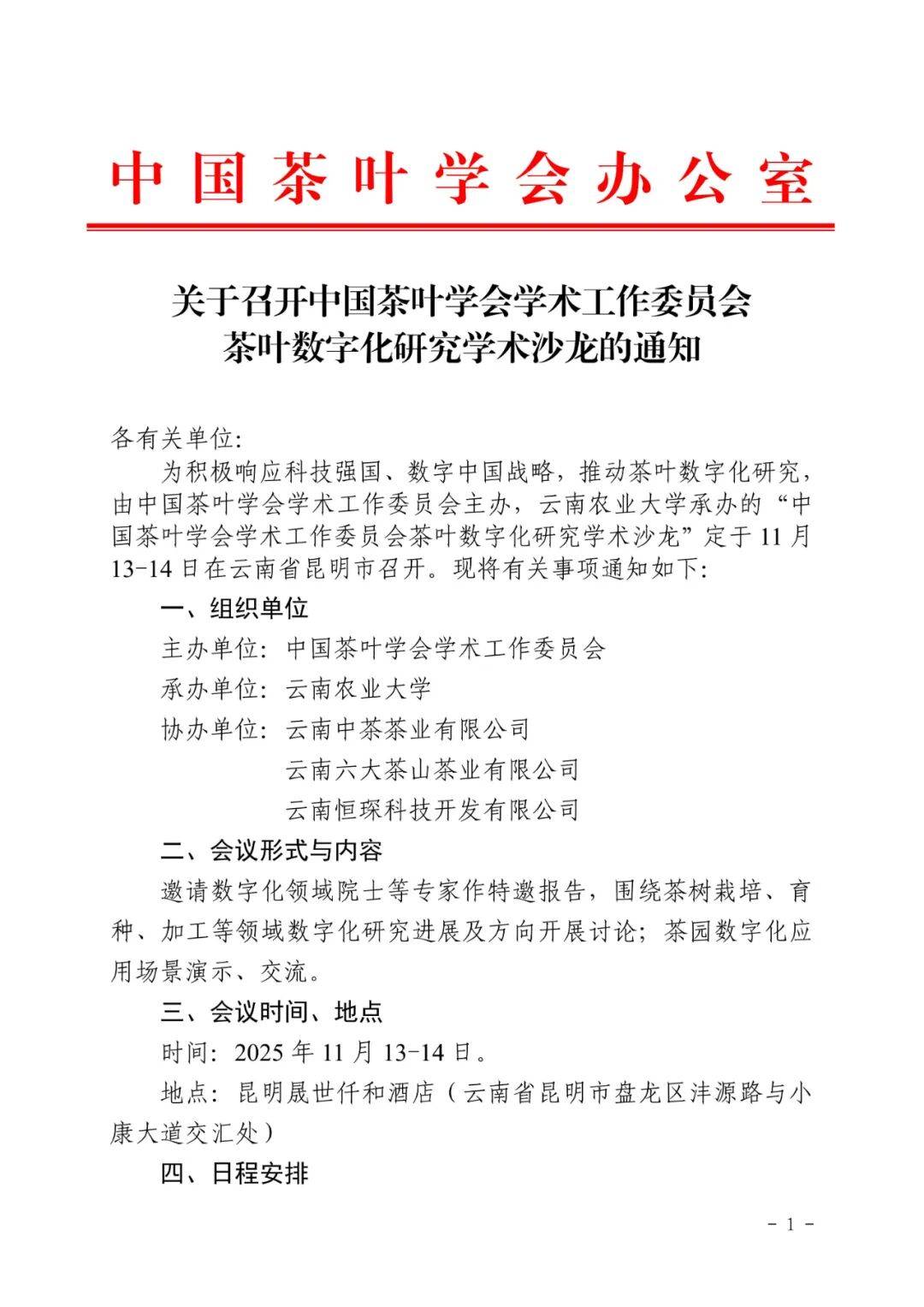 通知 | 关于召开中国茶叶学会学术工作委员会茶叶数字化研究学术沙龙的通知
