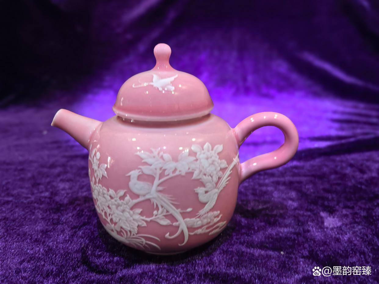 这件桃红堆白花鸟纹茶壶,以其独特的工艺技法、精美的装饰图案和深厚的文化内涵,成为了近现代陶瓷艺术中的一朵奇葩。它不仅见证了中国陶瓷工艺的传承与创新,更承载着一位艺术大师对美的执着追求和对艺术的无限热爱。