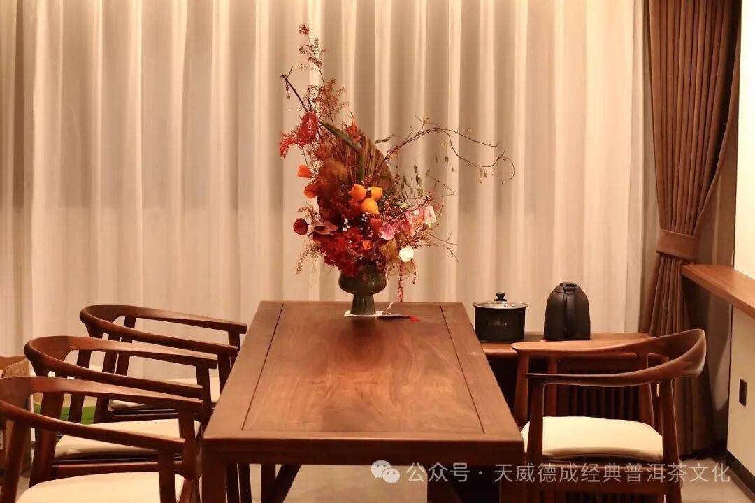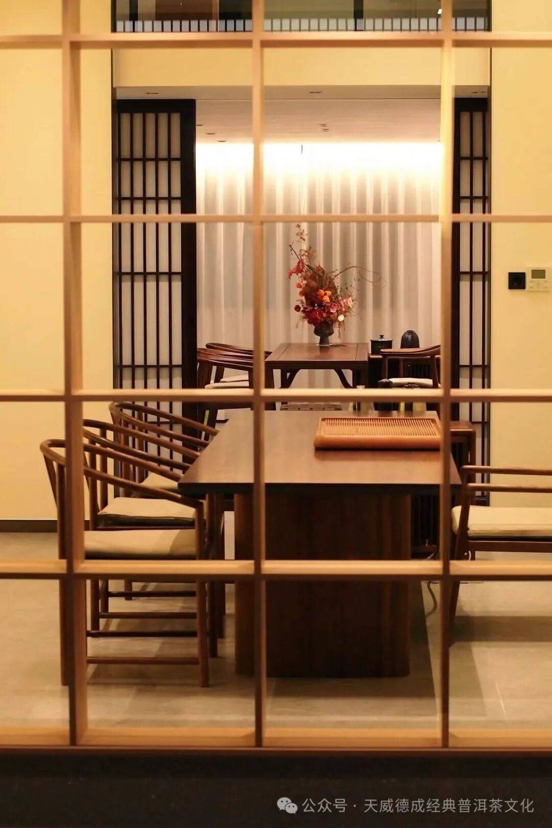 步入茶室,挑高的空间设计让视线豁然舒展。茶桌选用温润的实木,其纹理若山水逶迤。