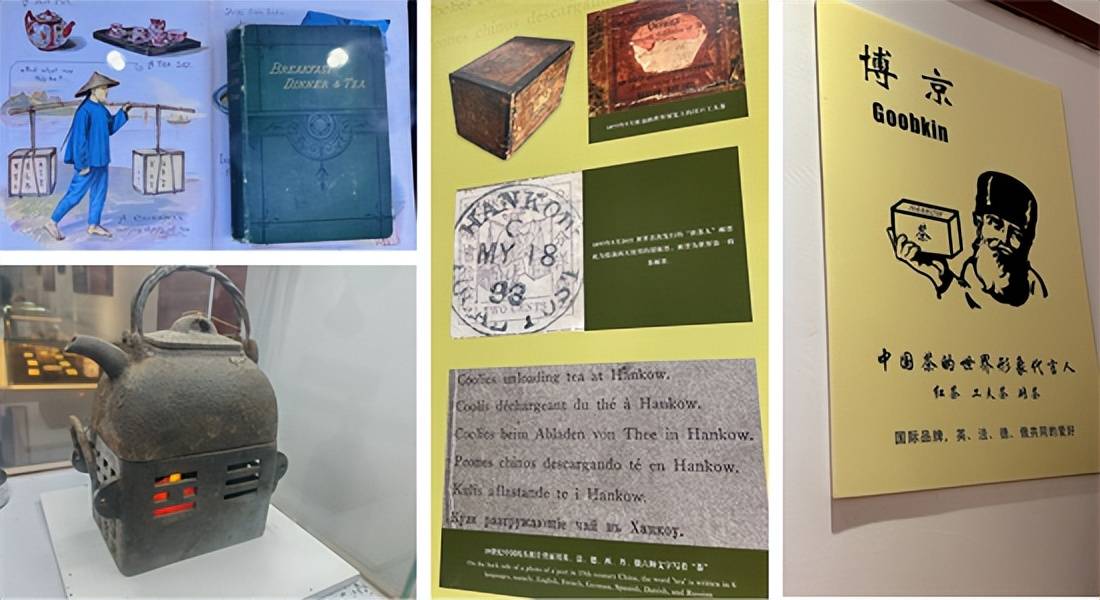 馆内有800余件展品,涵盖了万里茶道上的中外器具、照片、绘画、信笺、票据、包装箱、广告、出版物等。如印有“HANKOW TEA”的茶叶运输箱、百年前带有“囍”字的俄文“XAHbkoy”茶砖、世界首枚茶叶邮票等,每一件都是万里茶道历史的见证。
