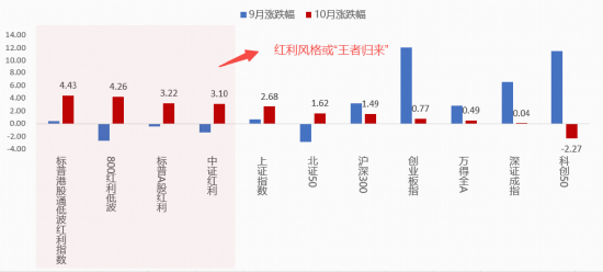 【主流红利指数与主要宽基指数今年9月、10月月度表现】